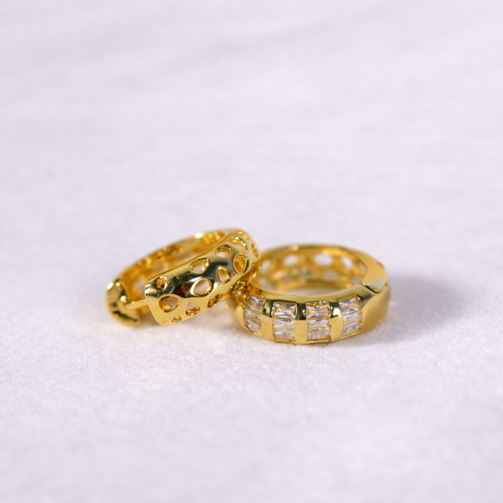 Uma metade é cravejada com zircônias,
