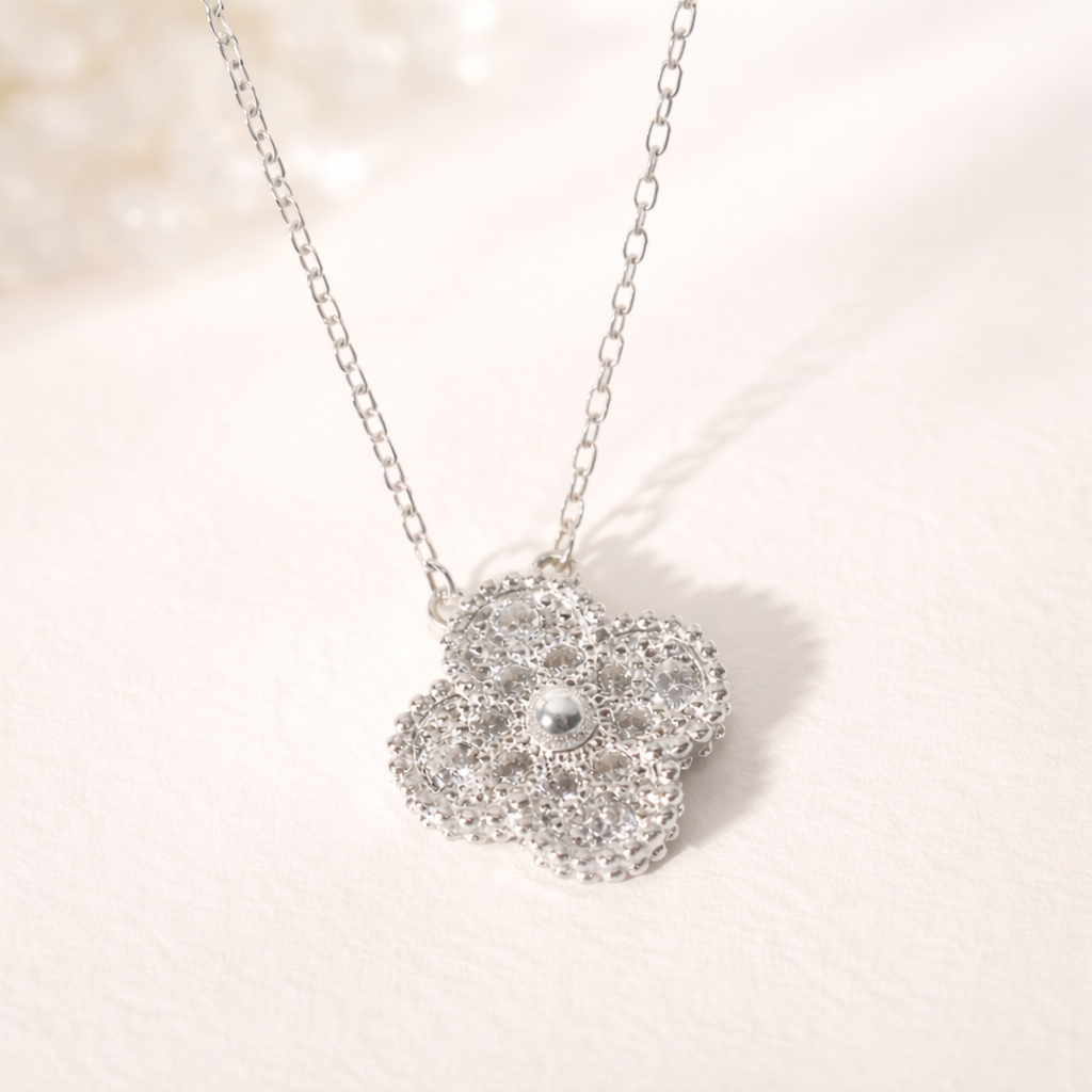 este colar um trevo cravejado combina delicadeza e